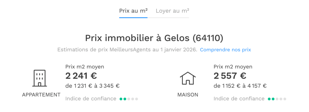 Prix au m² à Gelos : Les chiffres à connaître (janvier 2026)