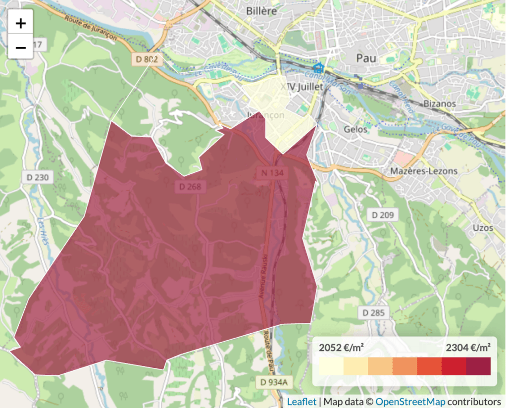 Prix au m² dans l’ancien à Jurançon (janvier 2026)