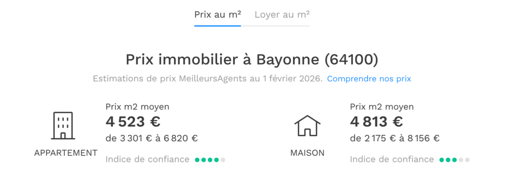 Son emplacement stratégique, à quelques minutes d’Anglet et de Biarritz, renforce son attractivité. On y trouve aussi bien des appartements de charme dans le centre historique que des maisons familiales en périphérie. Cependant, cette attractivité a un impact direct sur les prix.