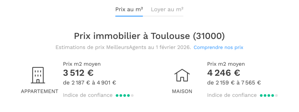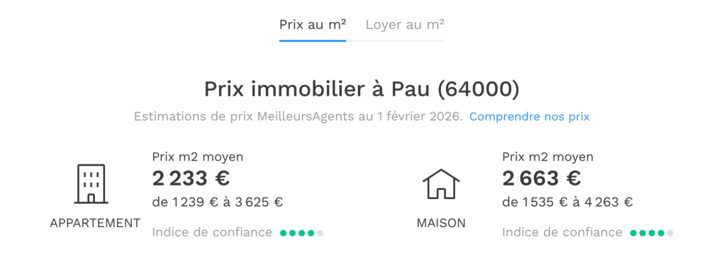 2 312 € / m² en moyenne (Appartements : 2 233 € / m² | Maisons : 2 663 € / m²)