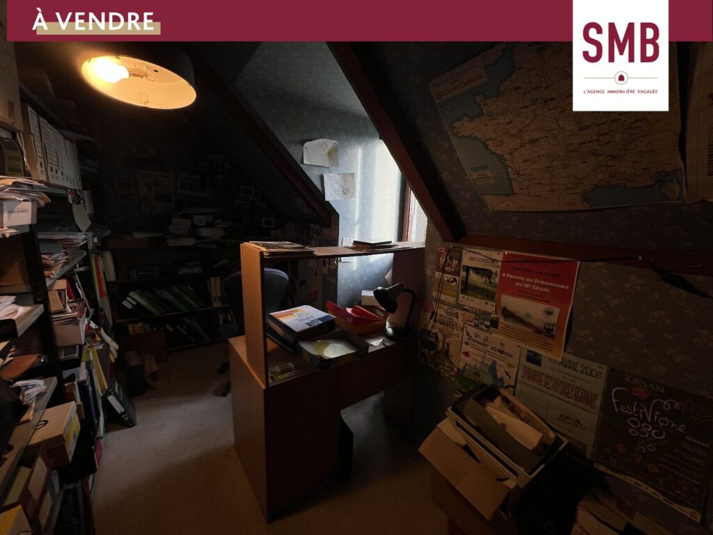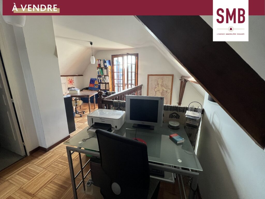 À l’étage, vous trouverez une mezzanine, une chambre et un bureau, une salle d’eau, un WC.